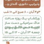 نمایشگاه دست سازه های سرامیکی لیماک ۱۴۰۳-۱۱-۱۶ نمایشگاه دست سازه های سرامیکی لیماک پنجشنبه و جمعه ۳ و ۴ آبان ۸ صبح الی ۱۰ شب ورکشاپ آموزشی ساخت ادامه مطلب »